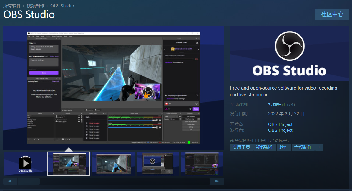 IT之家 3 月 22 日消息,经典的免费开源流媒体软件 OBS Studio 今日上架了 Steam 商城,用户可通过 Steam 平台的下载服务进行免费下载。