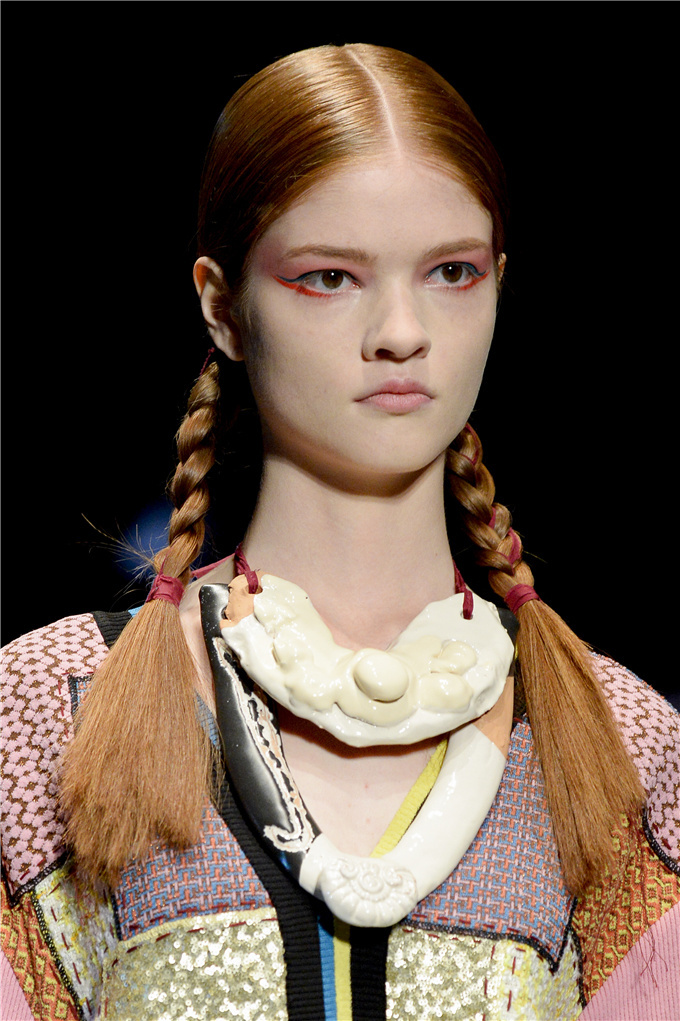 回顾米兰2020春夏时装周Antonio Marras双侧编发,同样是双侧编发,这个造型可一点土味没有,反而简单时髦到起飞,红色扎绳搭配红色下眼线让整体妆发显得非常协调。
