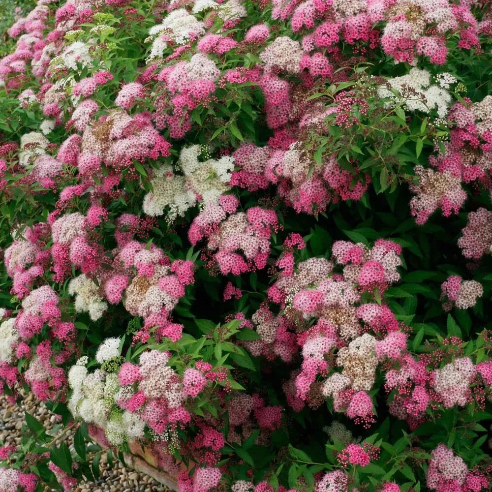 绣线菊现在有很多园艺品种可供选择,花色迷人,在夏秋季节都能欣赏到它那迷人的花朵,它比较适合地栽养护,可以忍受零下10多度的低温环境,在北京以南都可以露天栽种在户外,是很不错的庭院植物。