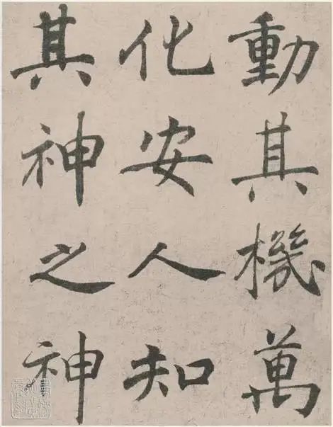 潘伯鹰的《临阴符经》其通过临习而达到从字中领悟其内在功力的效果,并非流于表面书势和体态模仿“二王”,故而能入更能出,诚如谢稚柳评价的那样: "师法河南,取其绰约,而舍其妩媚" 。