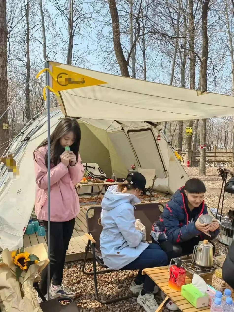 3月21日,有网友晒出田亮一家外出露营的照片。