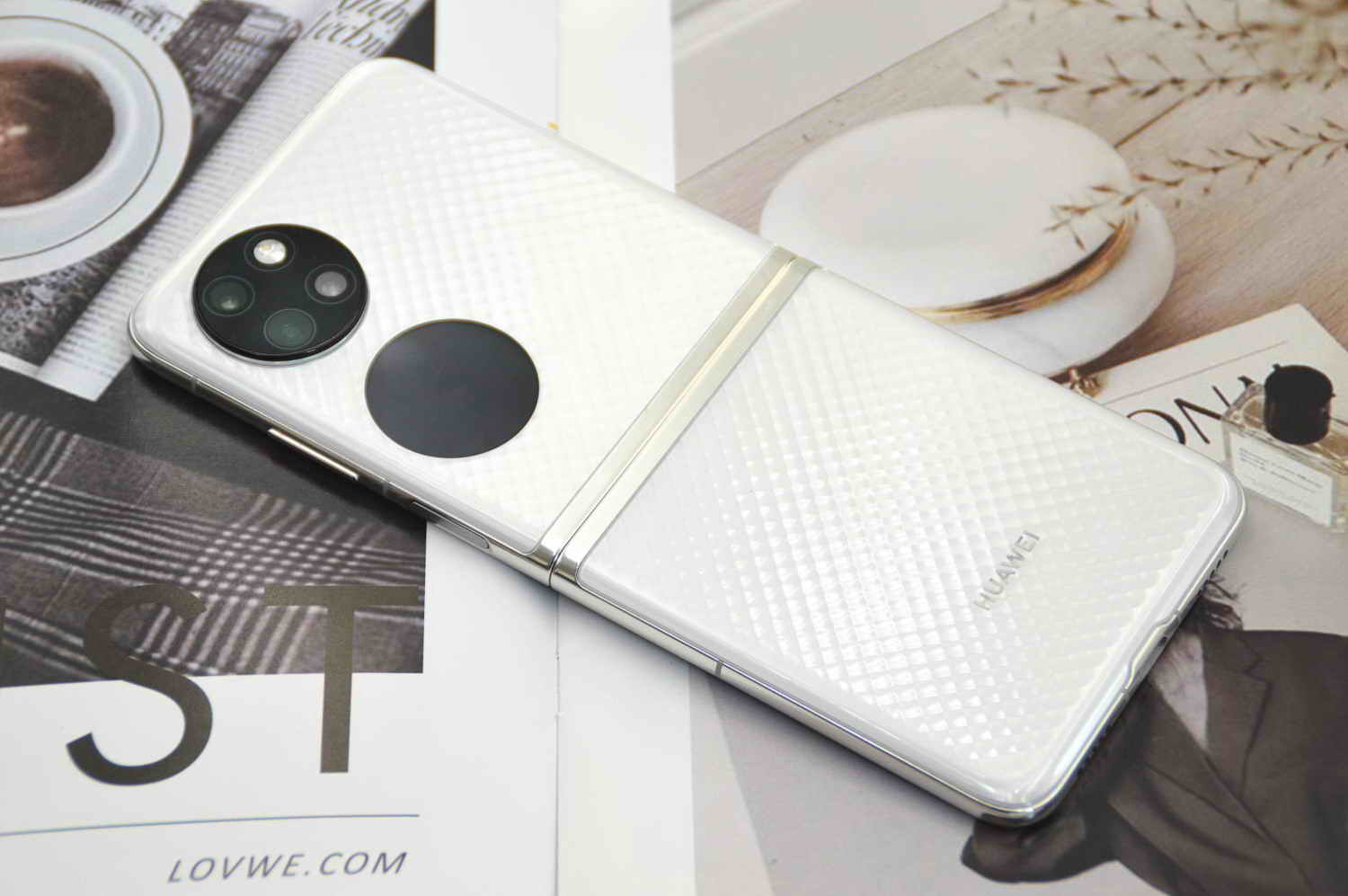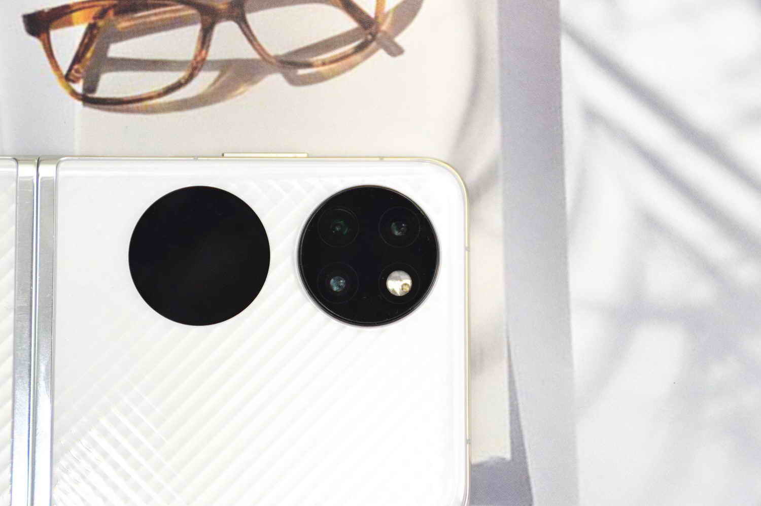 目前在售的华为P50 Pocket一种包括三种配色,即曜石黑、晶钻白和鎏光金,其中曜石黑的背壳采用乌面表面处理,整体显得低调、深邃,相比之下,晶钻白和鎏光金的背壳都带有各自独特的立体微雕表面,鎏光金的背壳设计师联手了知名设计师共创的仿生纹理,以脉络的形式展现出绵延的形态,配上鎏光金的色彩搭配,尽显高贵质感,而本次体验的晶钻白版本,是三种配色版本中唯一采用双面立体微雕工艺的,上手犹如镶钻的触感,纹理均匀且相当丝滑,相对其它两种版本而言,晶钻白版本既不太显高贵,又不会过于低调,属于更适合绝大部分人群的配色版本。