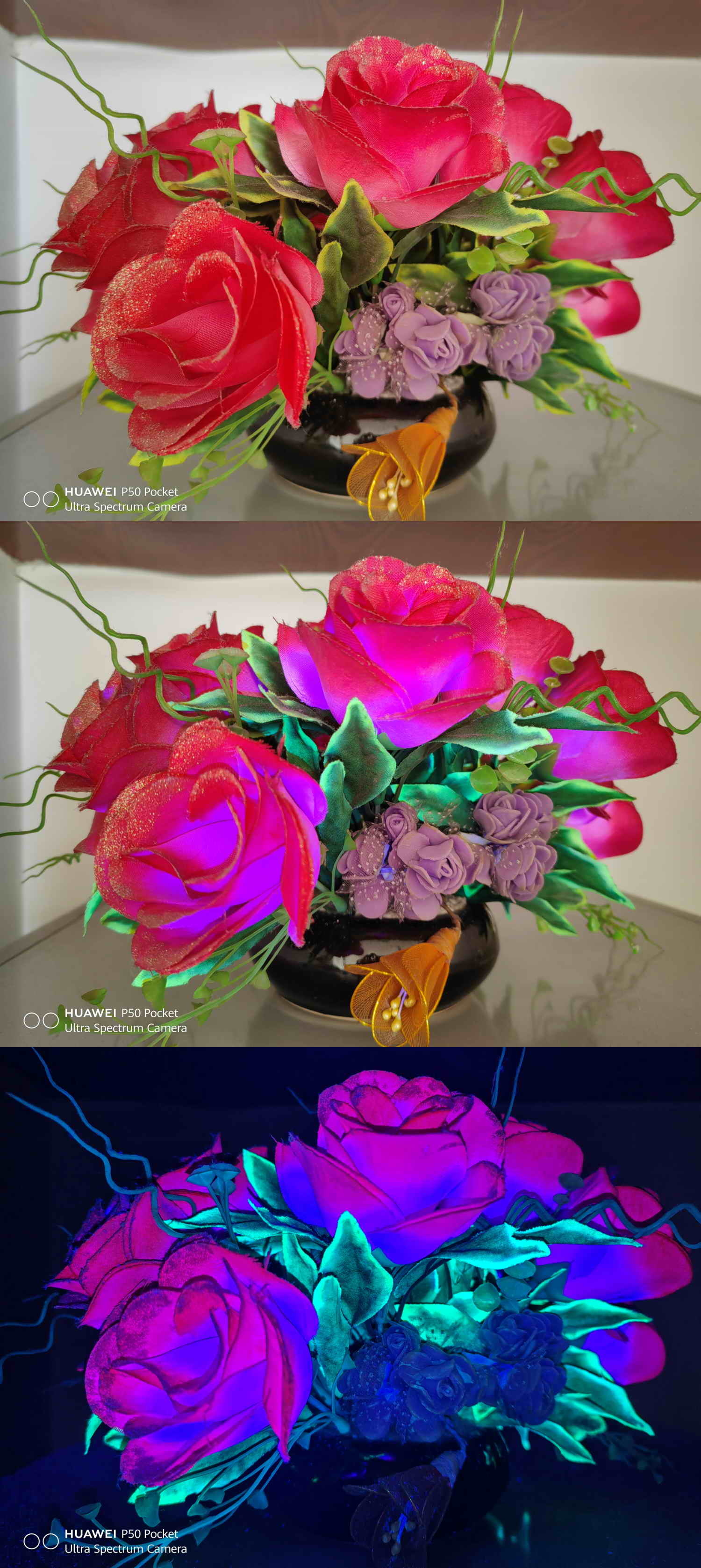 华为P50 Pocket在影像方面首次加入了荧光摄影模式,也是开发了一个拍摄模式的新玩法,用户可以通过相机应用中的更多找到荧光拍摄功能,在该功能下,可拍摄出带有荧光异彩的美奂照片,但需要注意的是,这种拍摄环境最好在暗光环境下,且建议带有有冷、暖色彩的场景,因为冷、暖色在拍照后可形成比较鲜明对比的荧光效果,例如在展示的样张中,第一张是正常拍摄模式拍摄的,第二张则是在光线环境较好的情况下,用荧光模式拍摄的,第三张则是在暗光环境中,用荧光模式拍摄的,从对比图可以看出,第三张的拍摄效果最佳,这也是利用好拍摄技巧才能更好地使用荧光模式拍摄的最佳照片。