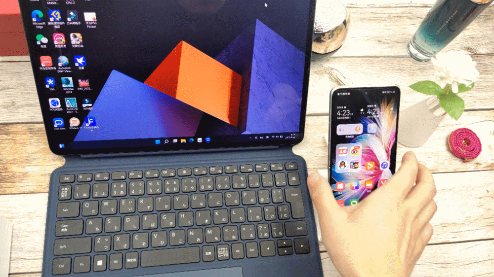 多屏协同是华为系列手机与同系列笔记本或平板协同操控的一个功能,其实现的功能不仅限于同屏显示,还可跨屏传输文件、打开、编辑文件等等,操作方式是将华为P50 Pocket开启NFC开启后,靠近华为笔记本或平板的NFC标签区域,然后根据提示连接手机,连接成功后,笔记本或平板上会同步显示手机界面的内容,此时,可在笔记本或平板上对手机进行操作,包括互相拖拽文件、直接打开手机中的文件以及录屏等操作,让传输文件和编辑文档更直接,给日常办公提供了非常大的便利。