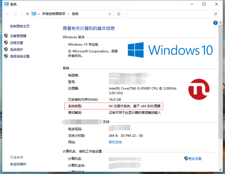 2、然后我们在系统属性界面中,就可以直接查看到电脑当前系统类型了,如下图显示的就是64位的操作系统。