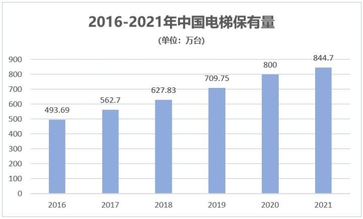 资料显示,随着中国房地产行业发展及旧房改造,电梯需求量不断攀升。我国电梯行业增速高于全球,已成为全球电梯保有量最大的国家。根据中国电梯协会的数据,2021年中国电梯保有量为844.7万台,同比增长5.6%。