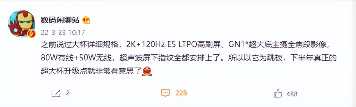 后摄模组将会搭载GN1超大底主摄。此外,X80系列还将支持80W有线快充,50W无线快充,以及搭配超声波屏下指纹。据之前爆料,vivo X80系列很可能搭载天玑9000处理器,并且听说vivo已经完成对自家V1芯片的适配。