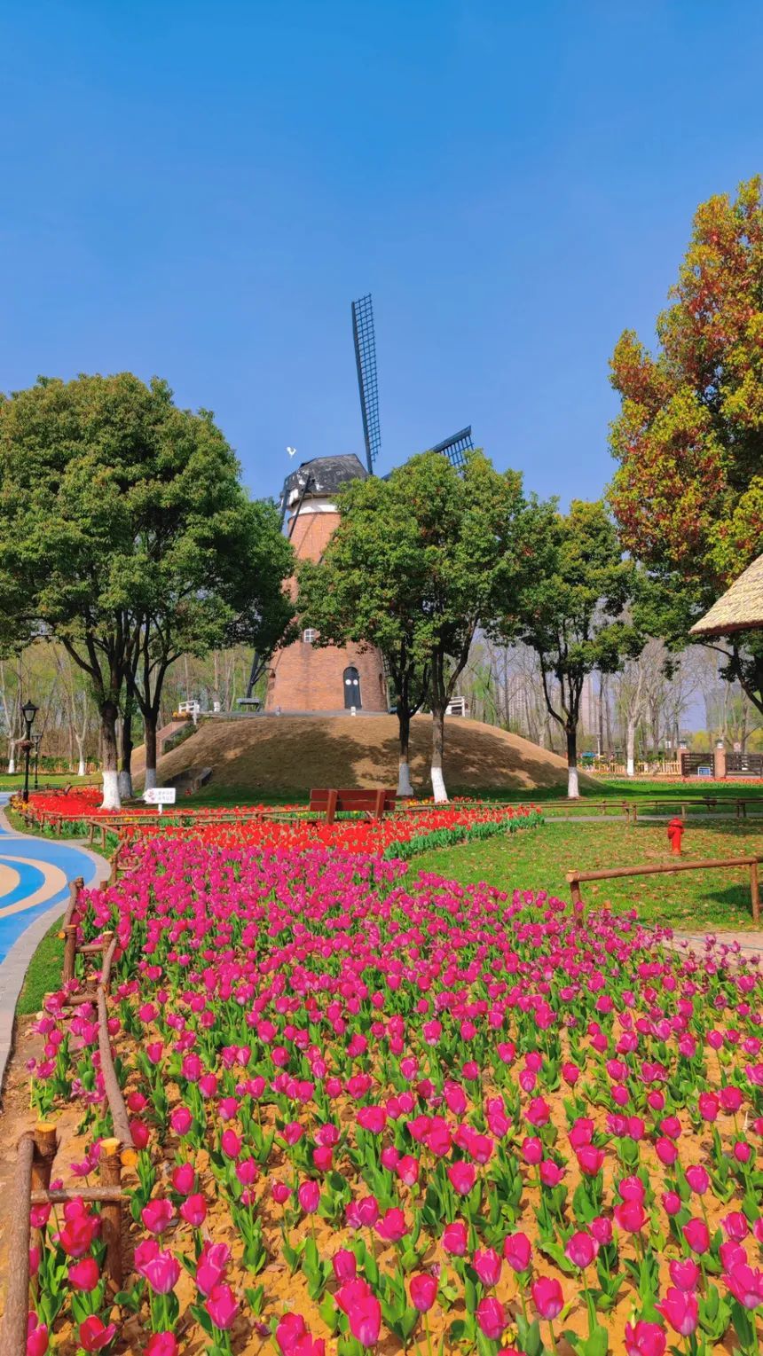 今年,滨江公园种下包括“道琼斯”“阿帕尔顿”等12个郁金香品种,十万余株郁金香将接续绽放,那一片片郁金香花海,开满了荷兰园,尽情展示着春日胜景。