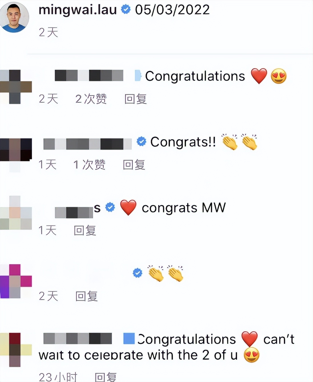 对此,有不少网友也前来在动态的评论区中留下祝福“Congratulations”“Congratulations,can’t wait to celebrate with 2 of u。”,看上去大家都对刘鸣炜再婚充满了期待,并且很祝福这一对。