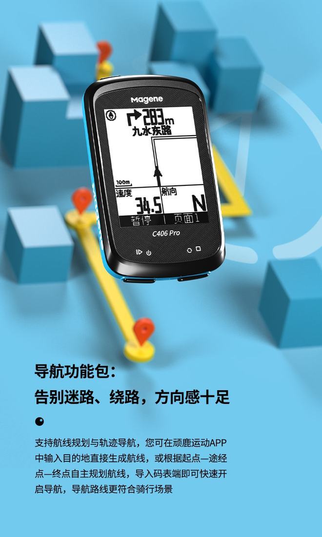 性能出众,实力出彩。无论您是骑行小白、进阶车手还是专业骑行运动员,迈金科技C406 Pro GPS智能码表,都将记录您每次弥足珍贵的骑行,让您直观看到自己的每一次进步,陪您突破自己,一往无前!