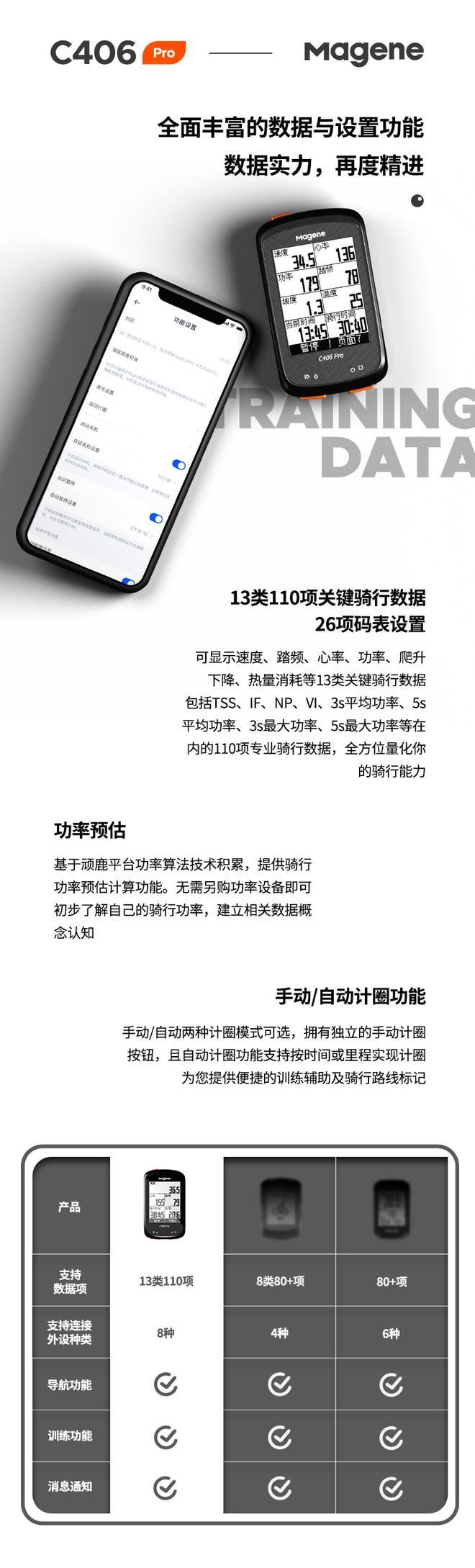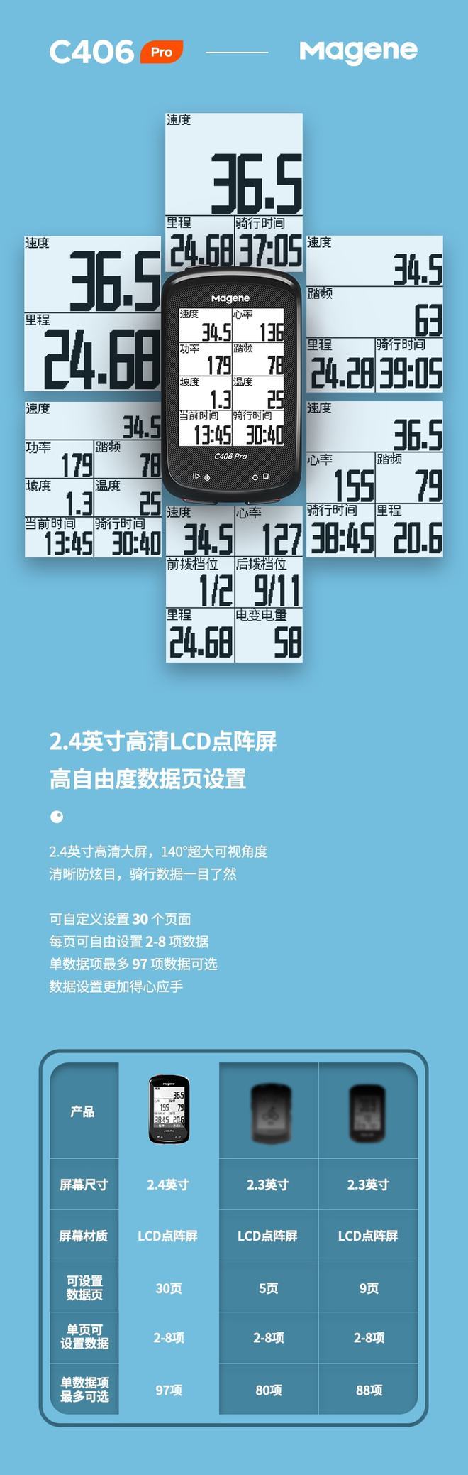 从产品参数中,我们可以直观地了解C406 Pro码表相较于C406码表的区别。