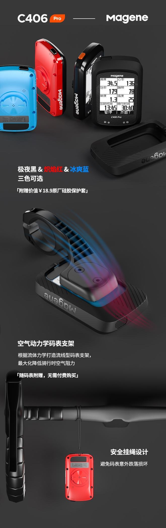 首先是外观,C406 Pro码表外壳三色可选,之前需付费的高质感硅胶保护套将随码表附赠。