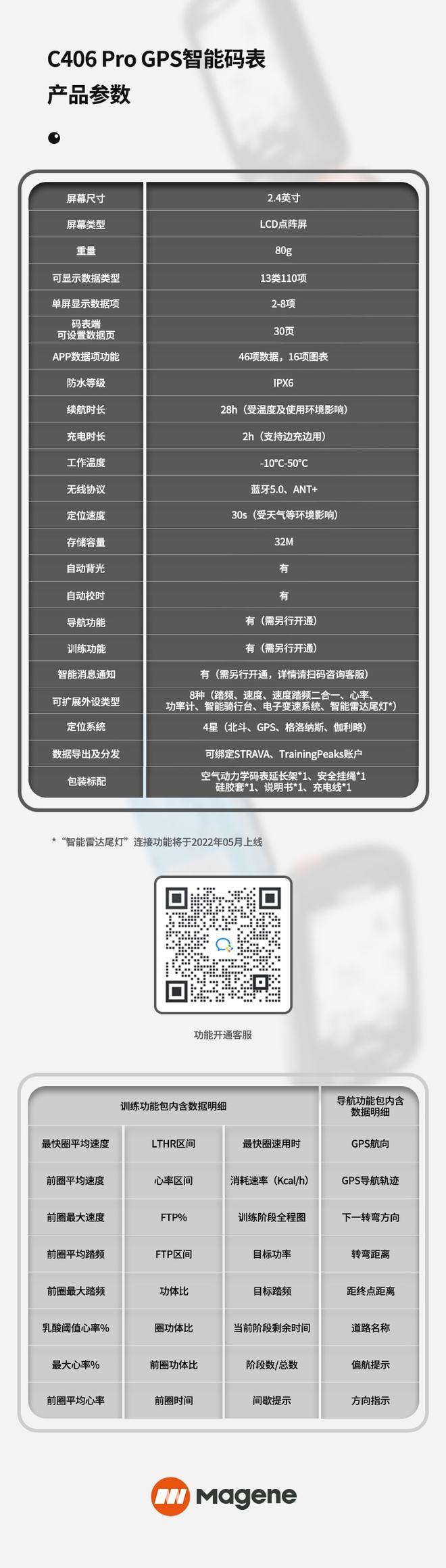 导航、训练2个功能包需另行开通,现已全面开启公测,公测期间可获得免费使用资格,期待您的加入!功能包内测活动详情后续将在【迈金骑行】公众号公布,敬请关注。