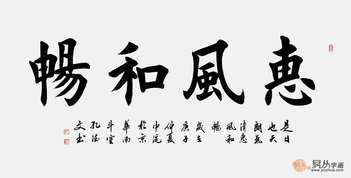 4、惠风和畅。简简单单四个字,描写了一幅清风拂面,阳光和煦之景象。这样一幅书法挂在客厅,令人心旷神怡。