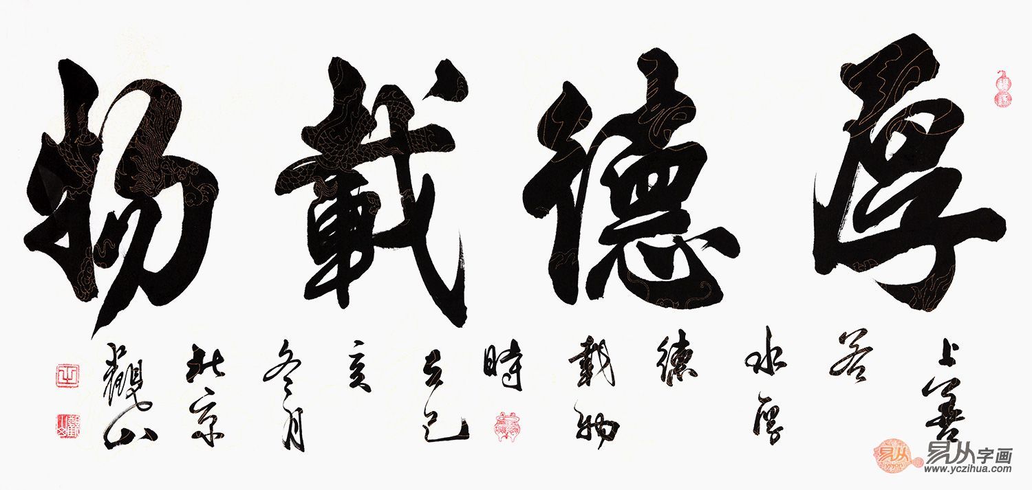 1、厚德载物。中华民族之精神,在渲染家中艺术文化气息的同时,还富有智慧的光芒。“自强不息 厚德载物”更是清华大学之校训。观山老师此幅厚德载物书法作品,以德为本,既能彰显主人品德高尚,又能营造书香气息,两全其美。