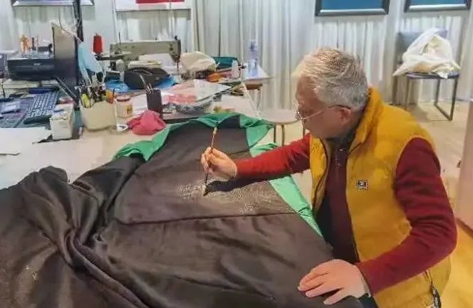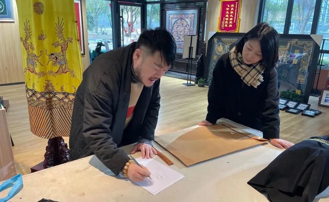 汉绣非遗传承人姜老师将图样绘制布料之上