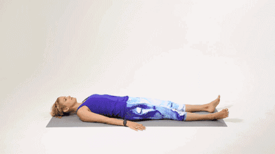 让膝盖慢慢推着毛毯向右侧滑开,手肘放在地面,髋部下沉,胸腔延展向前