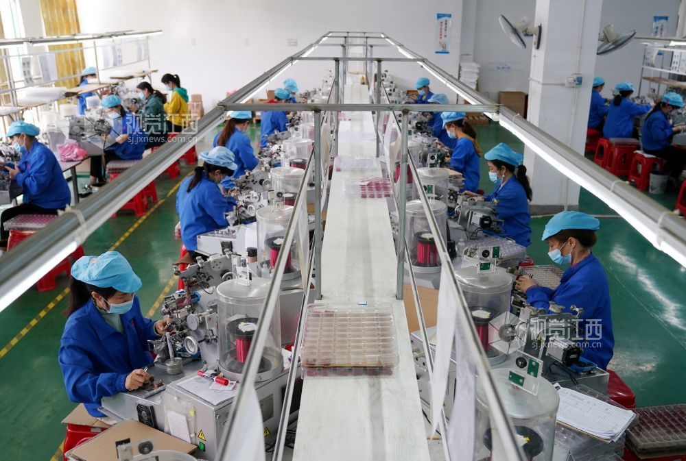 3月21日,位于新余经开区的新余市裕丰联电子有限公司,员工正在生产线上加工电子产品。该公司投入700万元,购买自动化设备扩大产能,满足市场订单需求,奋力冲刺一季度,力争首季开门红。 本报记者 邹宇波摄
