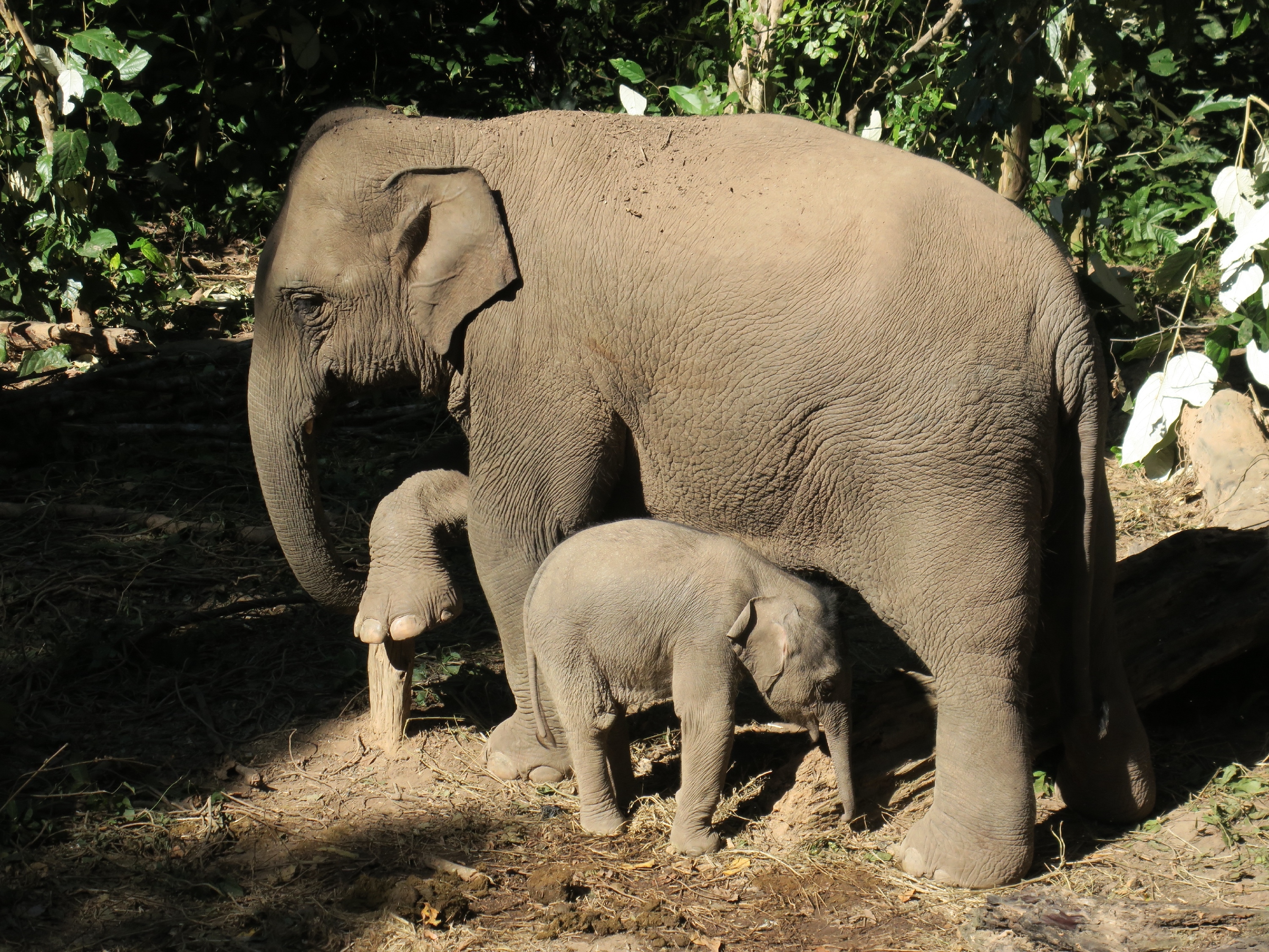 1月6日,新生小象与然然家族的母象在一起。新华社发(西双版纳野象谷景区供图)