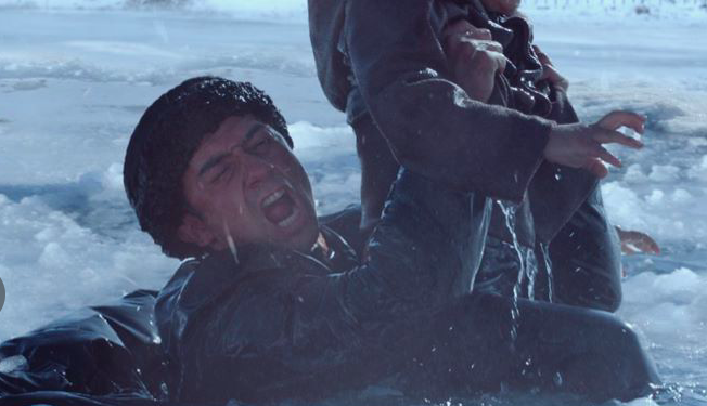 为了最大限度地还原在冰湖里救落水儿童的场面,拉齐尼的扮演者库提克江·艾沙胡加十几次跳入冰水中,冻得浑身打战,话都说不出来。