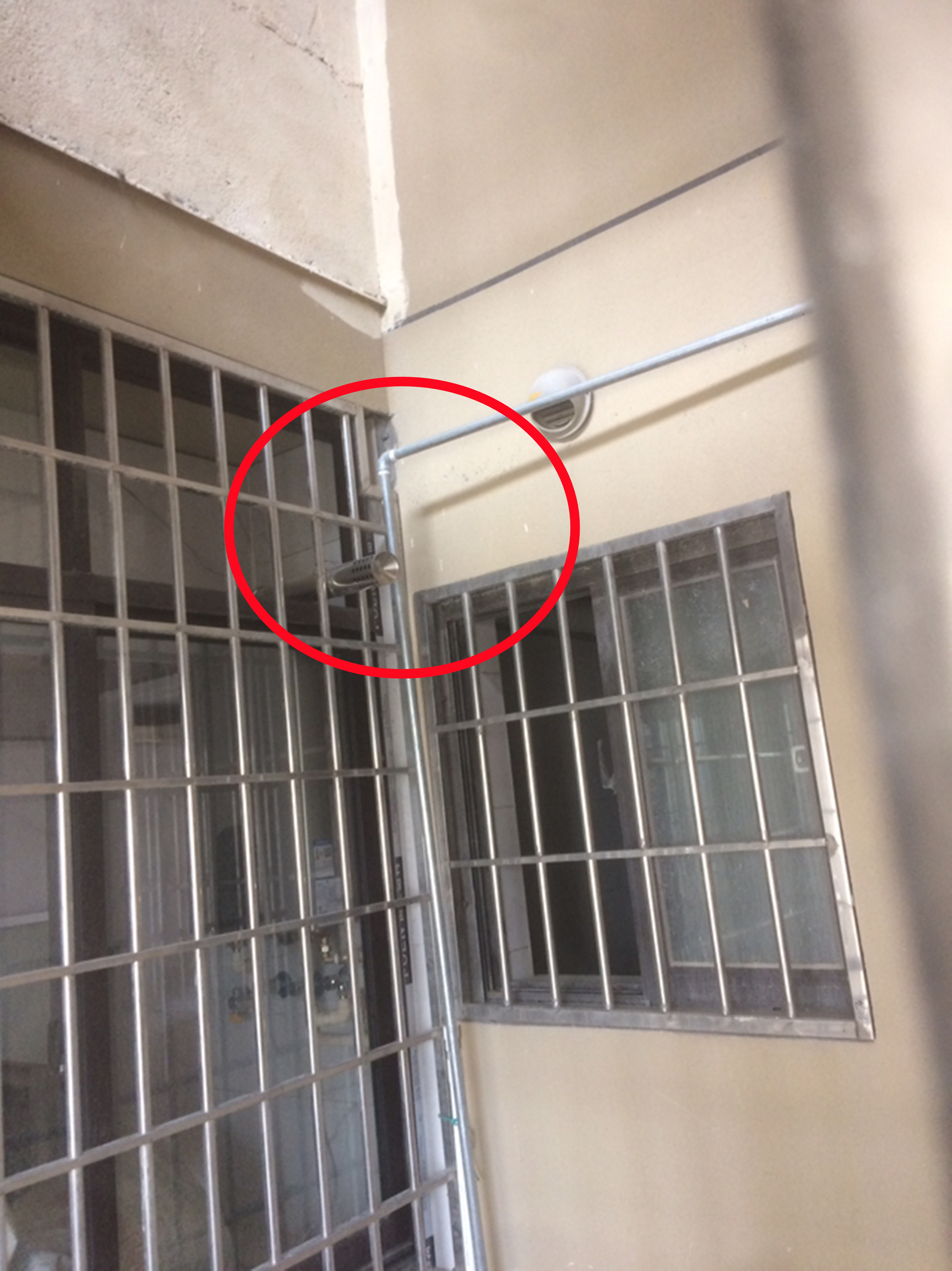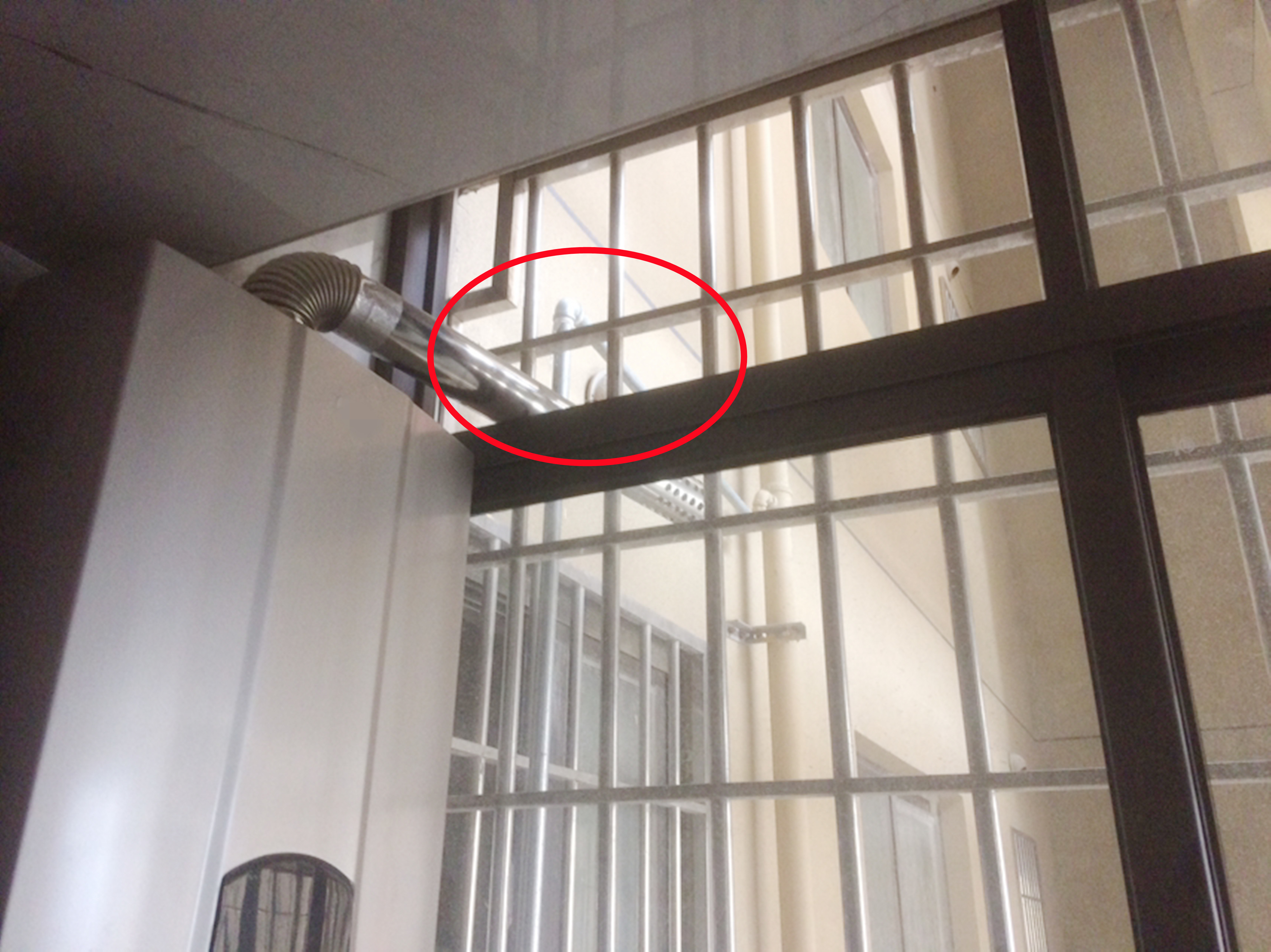 这里解释一下,排烟管排出的废气是接近200度的,摸上去都发烫,万一哪天燃气出现泄漏,距离燃气管这么近,老实说还是有燃烧爆炸风险的。