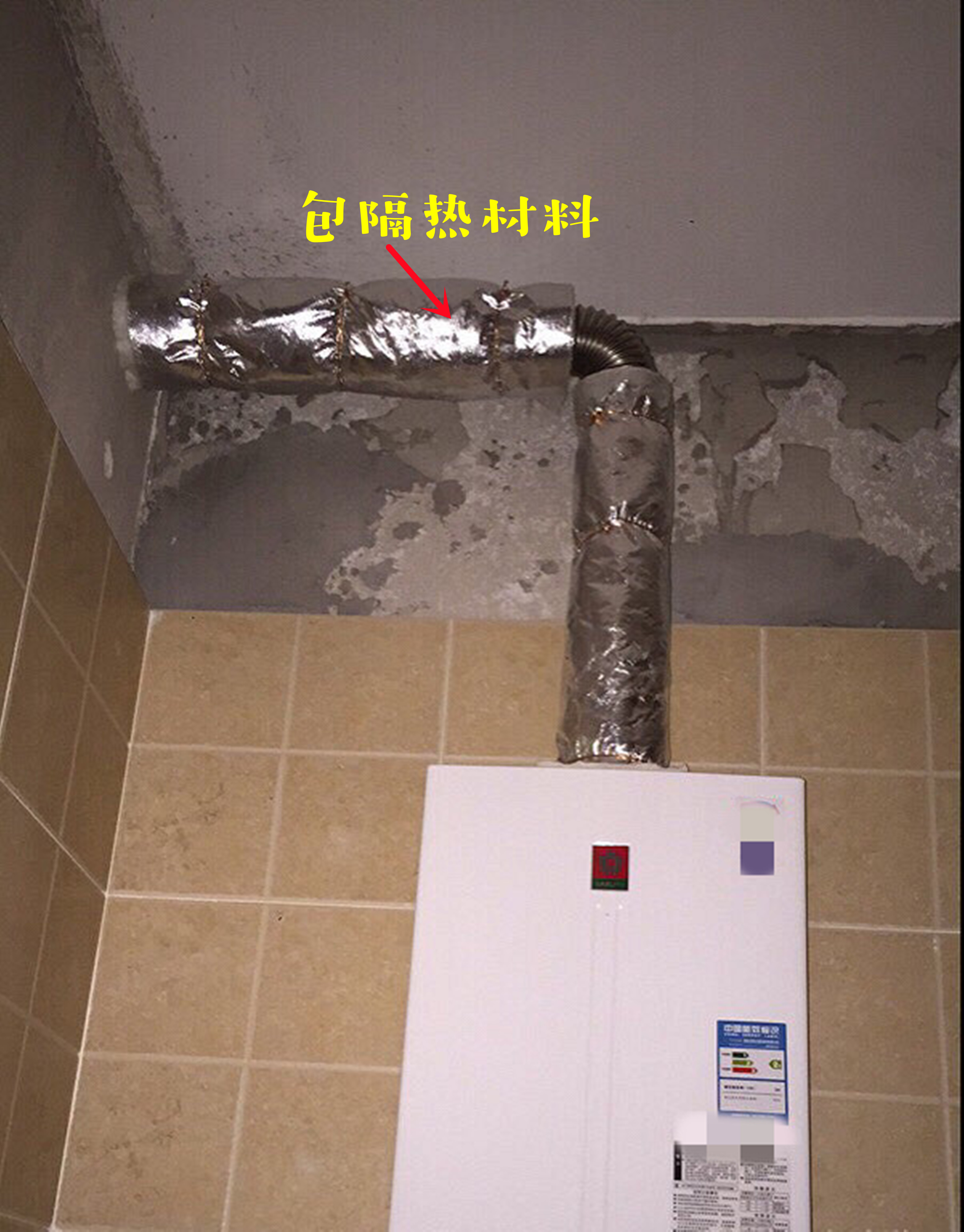 ①燃气管是严禁包裹的,那就给排烟管包一圈隔热材料,和燃气管分隔开,互不干扰。