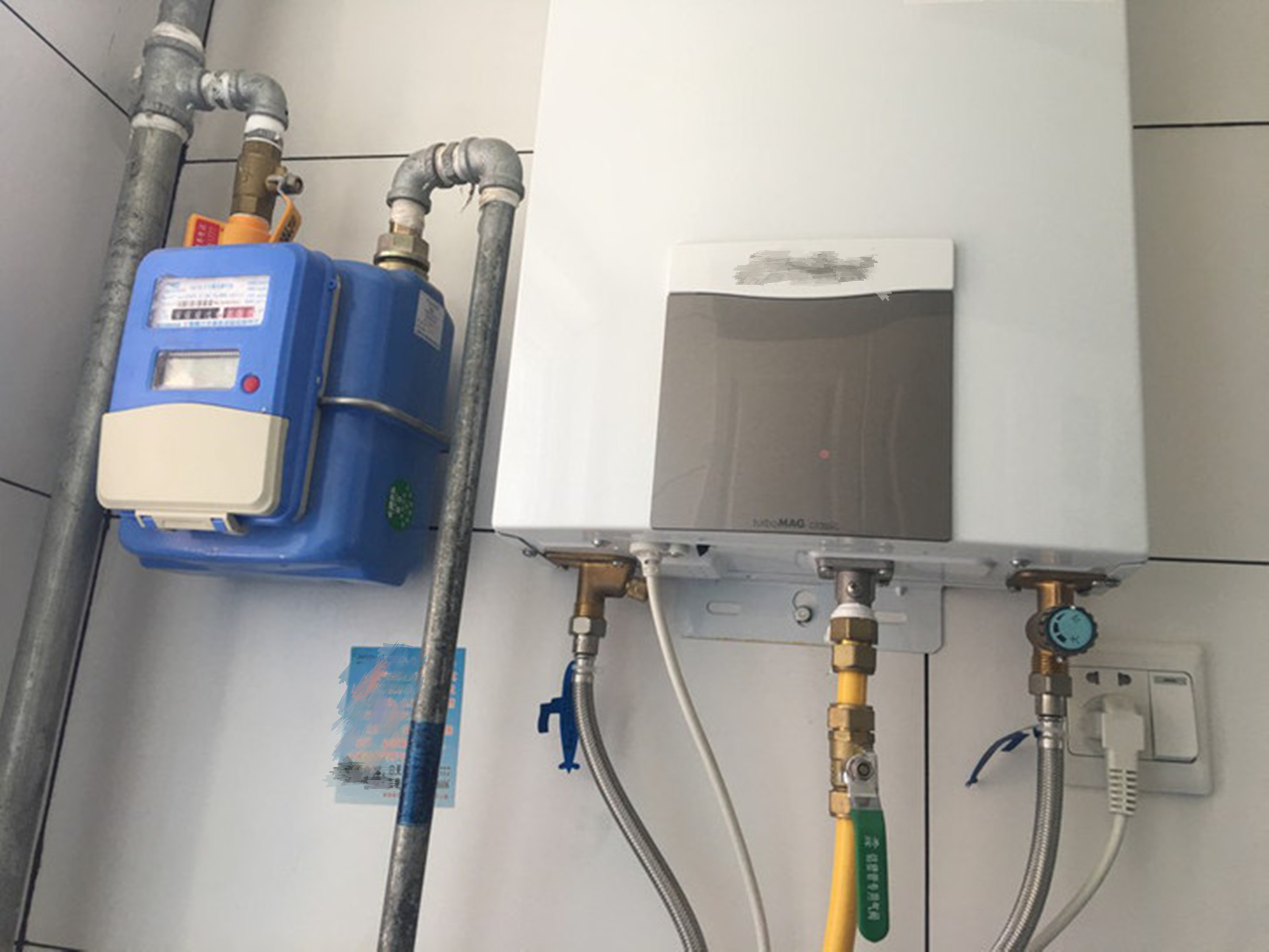 另外还有个不好的地方,那就是温度这么高,二者离得近,感觉燃气管老化速度也会快一些。也不知道师傅怎么装的……