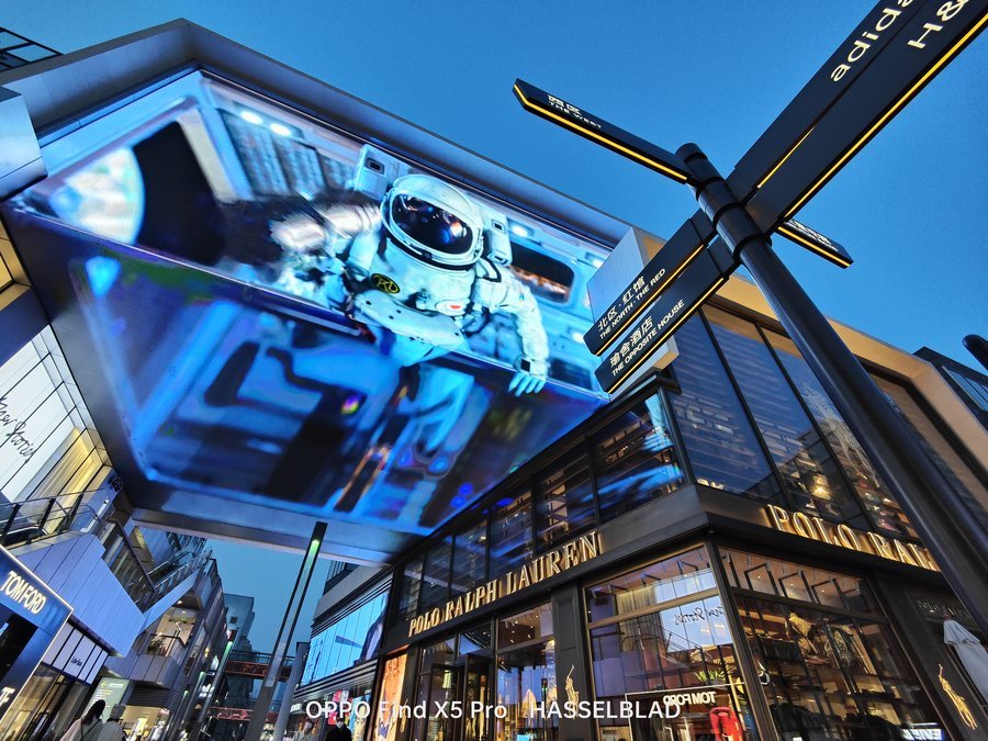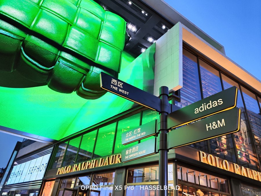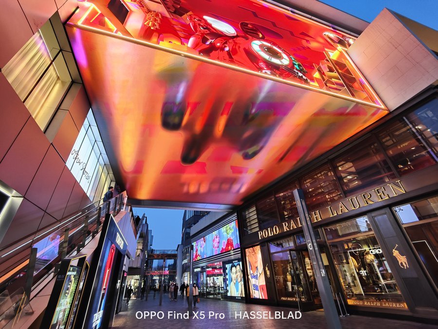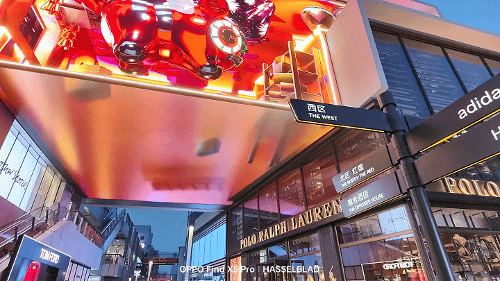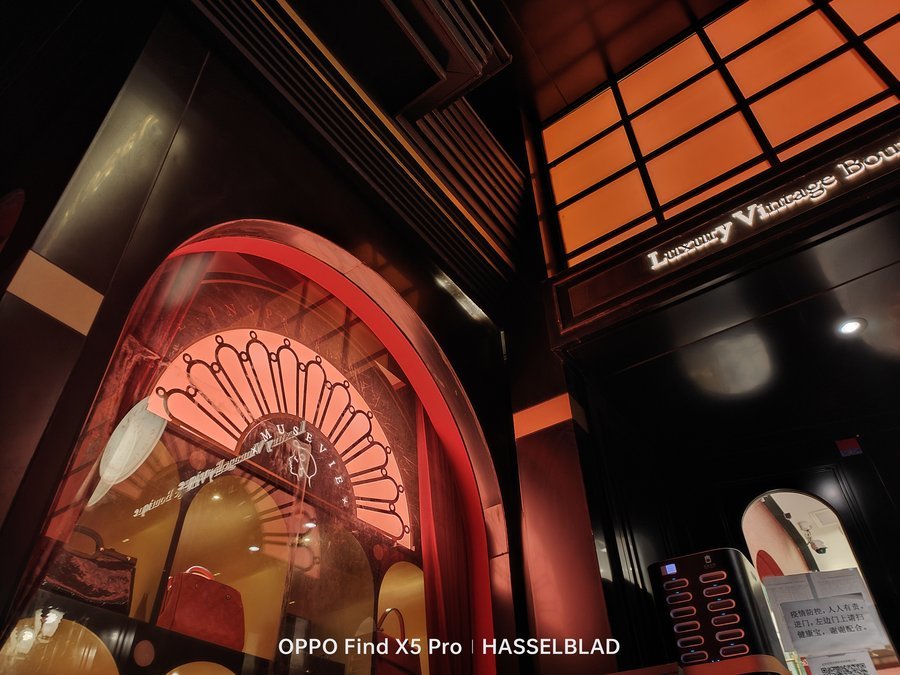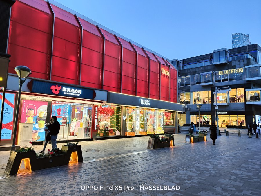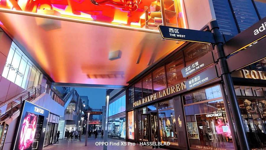 同样的,这组对比区别更加明显,OPPO Find X5 Pro不仅红色还原的非常准确,并且电子广告牌上的文字甚至商品的一些细节也都非常的清晰;而另一款手机直接将红色的广告牌变成了橙色,整体画面质感也更肉一些。马里亚纳MariSilicon X芯片可以让OPPO Find X5 Pro在影像拍摄的阶段直接在RAW域进行处理计算,能进行到最高20bit的 RAW计算,为整个影像链路输出无损计算后的高质量数据,可以在后续的影像输出上带来画质的提升。