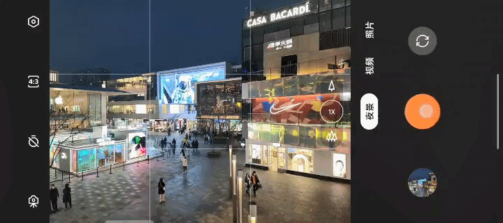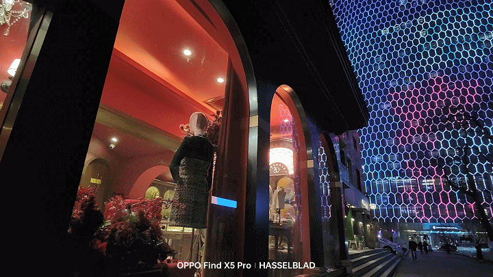 双芯带来的好处还体现在一些拍摄体验的小细节上。比如无论是OPPO还是其他厂商的“夜景”模式,基本上解决方案还是以拍摄多张照片最后通过算法合成一张明暗更均衡、宽容度更优秀的高质量夜景照片,所以都存在一个拍摄+合成的时间。但上面的录屏动图中明显OPPO Find X5 Pro速度更快,按下快门就能立即生成一张高质量的夜景照片,几乎没有等待的时间;而另一款手机虽然也使用的骁龙8处理器,对比以往一些手机在夜景模式下可能需要好几秒的合成时间来说已经算比较优秀的了,但还是有大概2秒钟的时间来进行处理。
