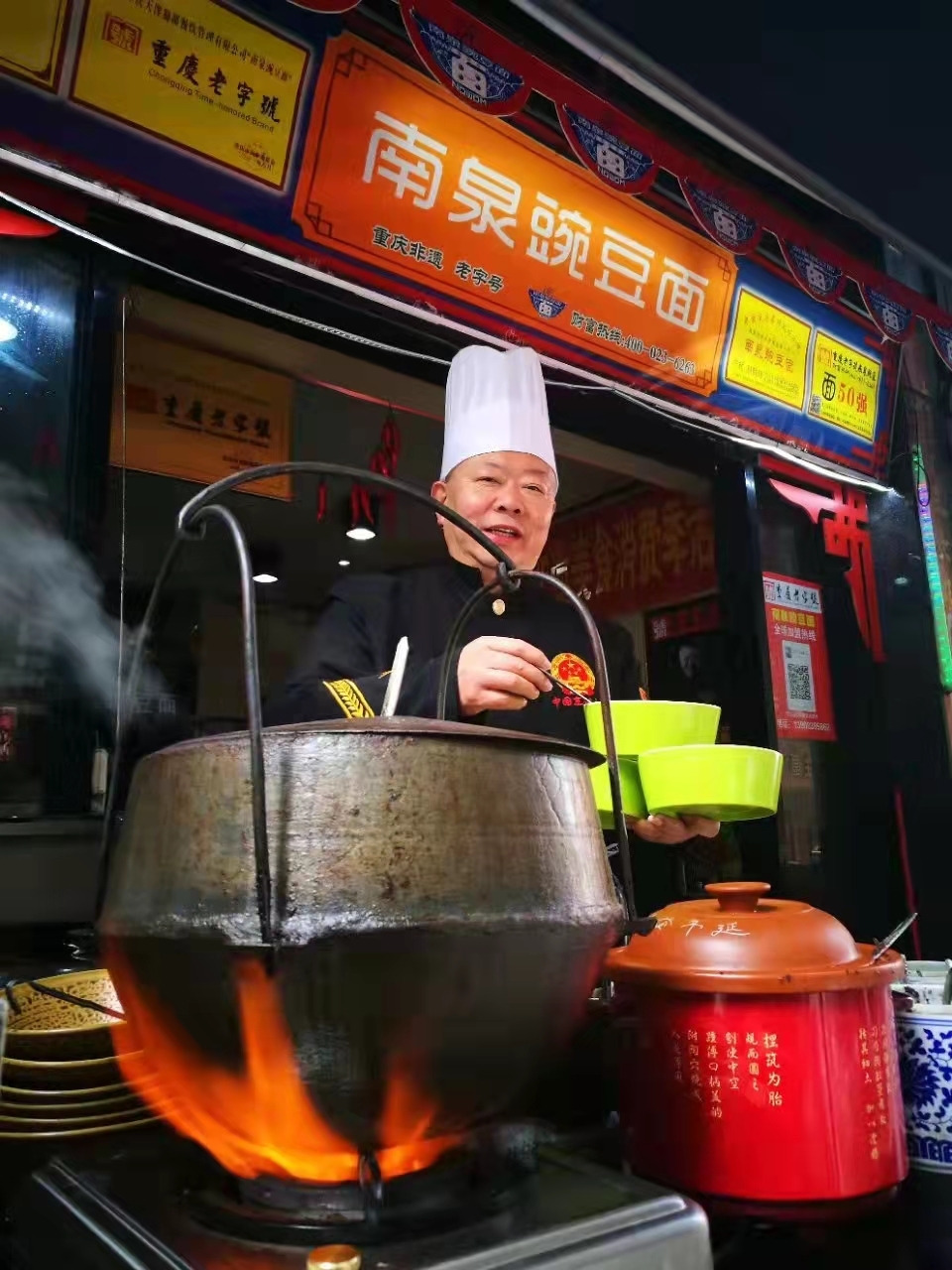 渝菜有着“百菜百味、一菜一格”的说法。在大众层面,重庆菜中的泉水鸡、辣子鸡、青椒鸡、水煮肉、水煮鱼、豆花鱼等成为打卡重庆的必点必吃菜。而且很多店都直接以爆款菜命名。坊间有着“重庆菜一个菜火红一间店,一间店火红一条街”的说法,由此可见重庆菜魔法般的诱惑!重庆菜的麻辣鲜香令人荡气回肠,兴旺了店面,繁荣了集市。今天,我们要说的是重庆小面,因为“一碗面牵动着一座城市的乡愁”,“一碗面让人惦记一座城”。重庆中国烹饪大师、非遗南泉豌豆面大师舒家华为我们讲述重庆小面—南泉豌豆面的品牌传奇……