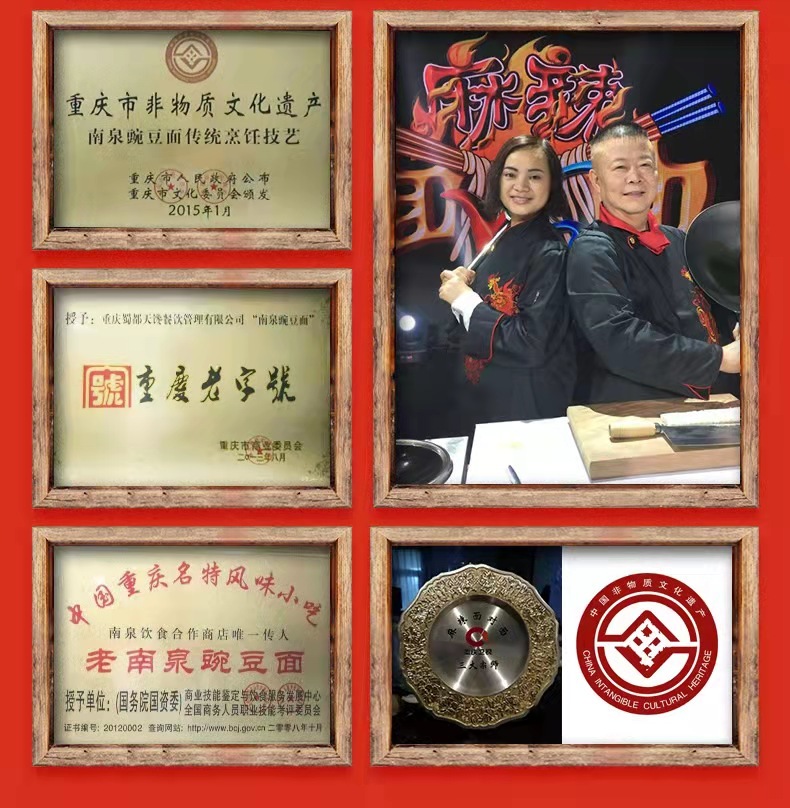“东风吹雨过青山,却望千门草色闲。”始于1945年的南泉豌豆面,承载着很多老重庆人的记忆和情感。一些老顾客约在舒家华的非遗店中来吃一碗“老味道”的南泉豌豆面回忆过往,“场面非常令人感动,一群二十来个人一起来吃面,拉着店长的手话家常,吃完一起照相。老太婆吃到小时候的味道,边吃边流泪,都是真实的情感流露。”舒家华动情地说,“不仅有国内客人,还有海外的客人通过美国厨师协会找到我们这里吃南泉豌豆面,有的还通过我们打听老街坊,分开四十多年的老朋友、领导又找到了,从九点摆龙门阵,一直侃到凌晨两三点……”正如舒家华大师所说,小面不仅是小面,重庆小面是一份亲情的牵挂和惦记,是永远忘不了的乡愁和乡味,无论走多远回到重庆,很多人的选择就是先来一碗重庆小面、南泉豌豆面来抚平回家的激动,南泉豌豆面有着代表着亲情和乡愁的味道……