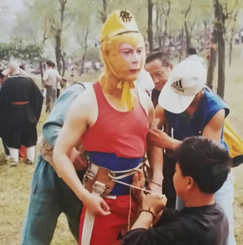 威亚在影视剧的拍摄中专指一种设备吊着演员或道具飞来飞去的钢丝,又称威亚丝。中国较早把威亚技术运用到电视剧拍摄中的,要数83版《西游记》了。虽然那个时候的动作单一生硬、合成技术较为落后,只能完成一些腾云驾雾等简单动作,画面上也经常看见抠像没抠干净而出现的毛边,确已经足够引人入胜,受到广大观众的喜爱。