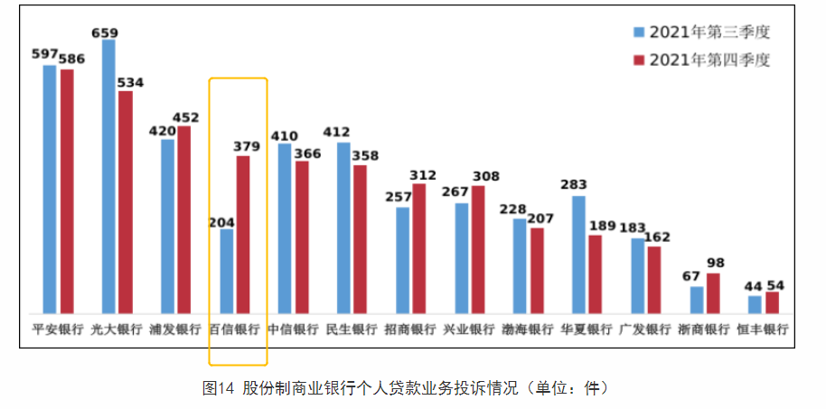 银保监会通报显示,去年第四季度,百信银行收到个人贷款业务投诉379件,环比增长85.8%,投诉的增幅在股份制商业银行中排名第一。去年全年,该行个人贷款业务投诉为801件。