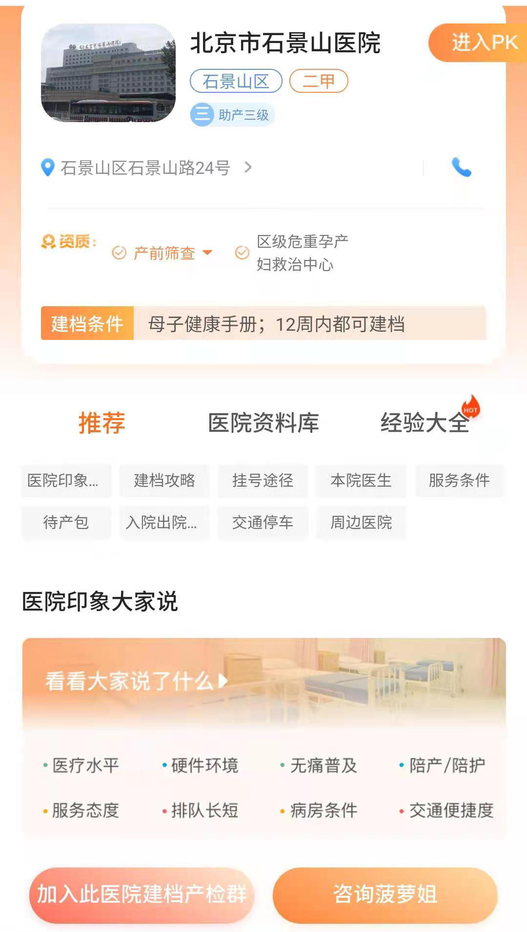 这篇文章给孕妈们介绍的是北京石景山医院建档时间、建档流程、建档挂号注意事项以及医院生产环境。