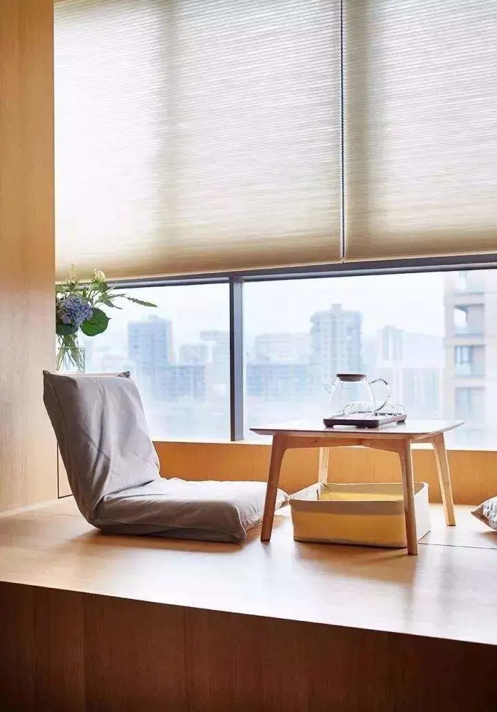 空间不足没法设计成很大的榻榻米?没关系,那就直接弄个柜子,下面可以收纳东西,上面放上小茶几,照样能与朋友喝茶问道!
