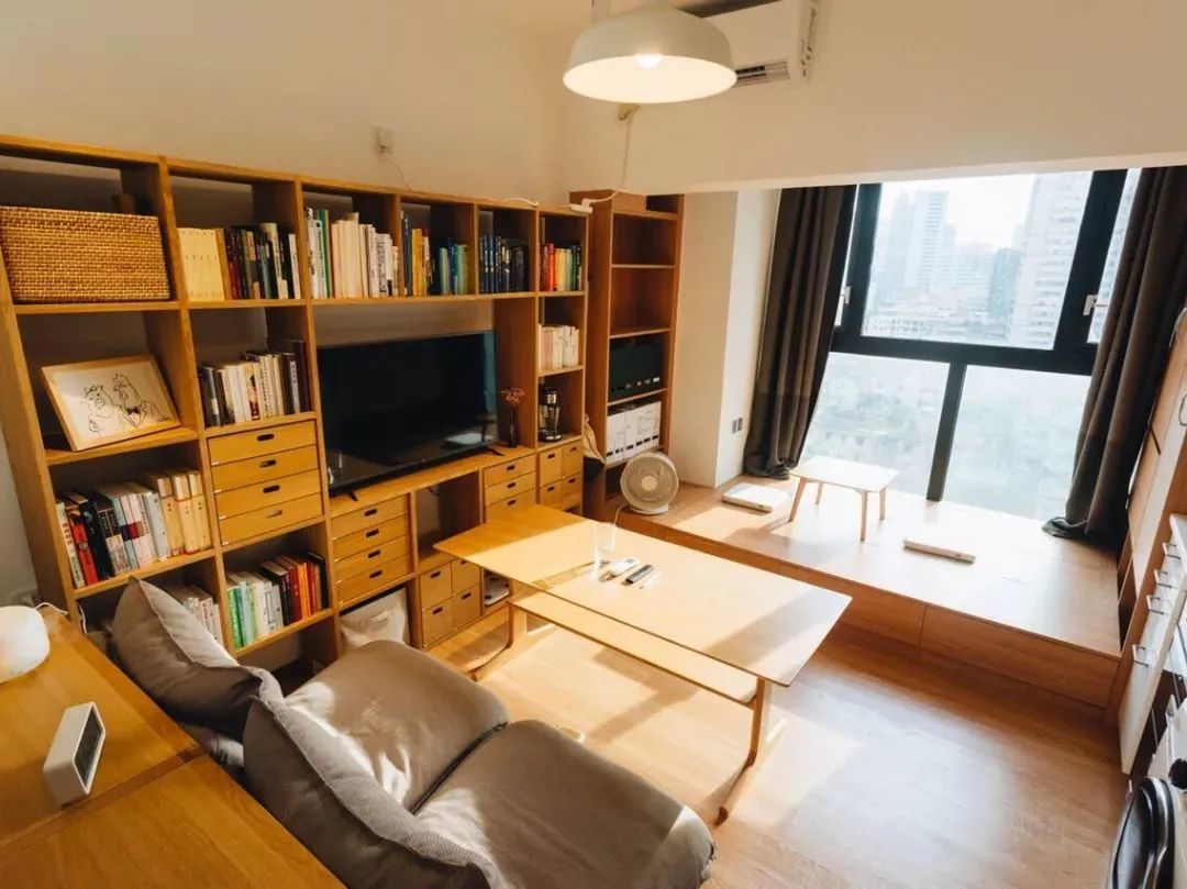榻榻米两边还能打造柜子,放置收藏品、衣物那是完全没有问题的。