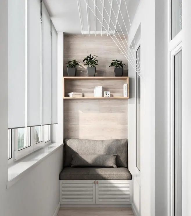 当然,阳台里的榻榻米不光美观性,还有隐藏的收纳功能哦!下面空出的空间不要浪费,打造成柜子、小抽屉,还是能收纳不少东西的。
