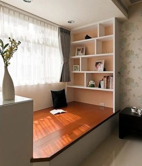 家里书太多亦或是没有足够的空间设计书房,阳台改造成榻榻米,侧面打造成书架,坐着看书,躺着看书,怎么学习轻松怎么弄!