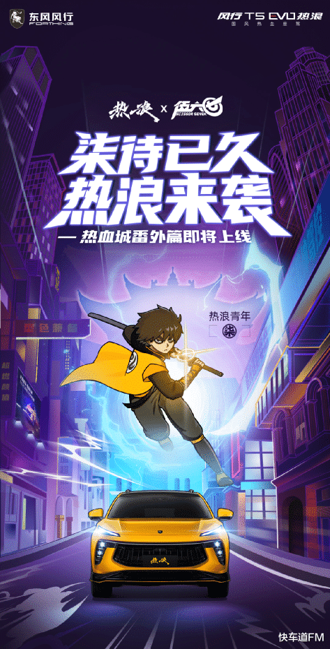 而本次联名的另一主角——风行T5 EVO热浪是东风风行面向年轻人推出的一款“热血青春”车型,凭借动感美学和型格魅力,传达出新世代独树一帜的热血态度。而这种理念正与伍六七始终传递热血青春正能量的精神内核具有高度一致性。可以说,正是伍六七和风行T5 EVO热浪相通相融的“热血青春”因子,最终才擦出了跨界创意火花,实现了国潮SUV与国漫IP的灵感碰撞。
