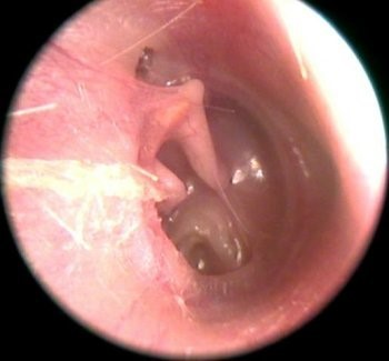 中耳鼓室黏膜一旦出现炎症,就会刺激渗出很多无菌或病菌性分泌物,这些分泌物会由于积液挤压或毒性作用引起鼓膜穿孔,从而导致鼓膜的振动传音功能下降,引起传导性听力下降