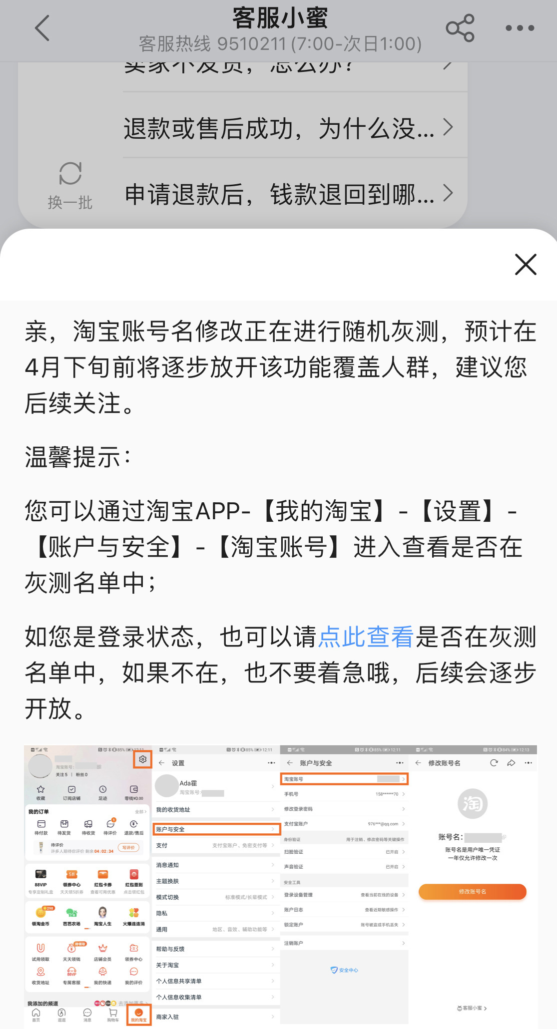 有改名需求的用户现在可以向“客服小蜜”发送“改会员名”查看是否在灰度测试名单中。