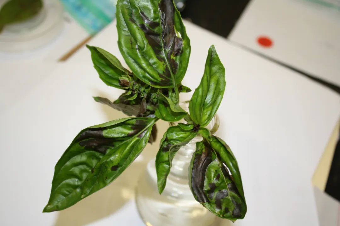 上面的罗勒感染了黑斑病