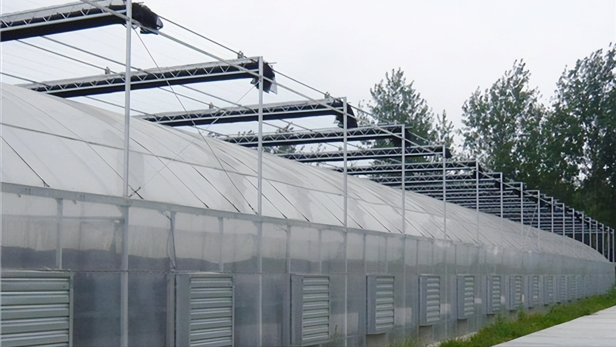 连栋温室的组成部分由主体骨架材料,内外遮阳系统、四周覆盖材料、顶开窗、水帘外翻窗、风机湿帘降温系统、内保温系统、控制系统等。根据地理位置的不同如高寒地区需要加装一种或多种增温措施。如电锅炉、燃油暖风机、风机盘管、空气源热泵、水源热泵、地源热泵等。