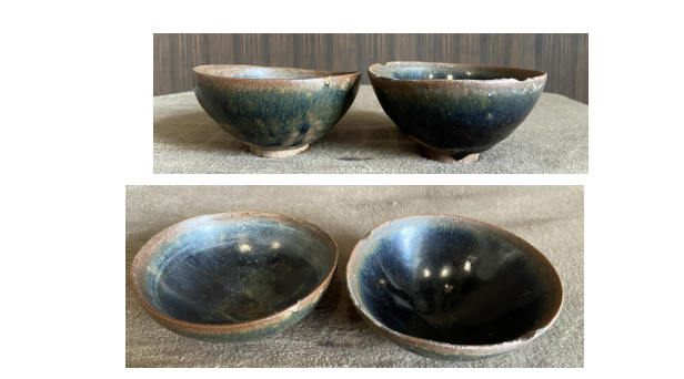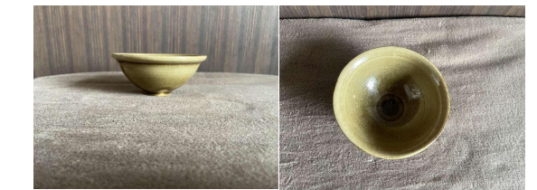 底部有明显的旋纹 —— 制瓷工艺已有了显著的进步,从原始的泥条构筑发展为半机械化生产;器物上有施釉工艺 —— 较更早的原始陶器有了实质性的改变;器物形状为墩式碗,没有唇口 —— 从陶器发展到半陶半瓷。这个碗基本具备了现代陶瓷茶碗的全部要素。