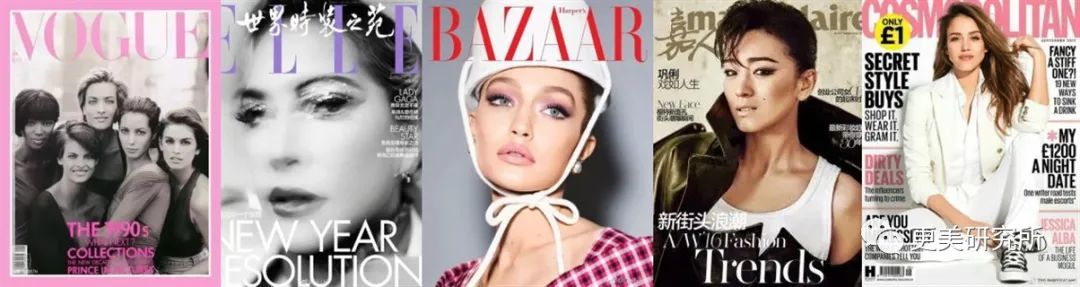 五大是VOGUE、ELLE世界服装之苑、时尚芭莎、嘉人和时尚COSMOPOLITAN。