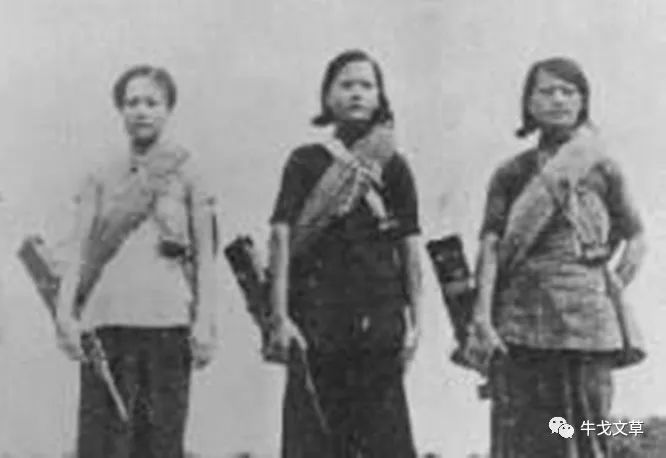 这是琼崖纵队女子特务连(红色娘子军的原型)的三名女战士,手中的驳壳枪全部结合了盒式枪托。