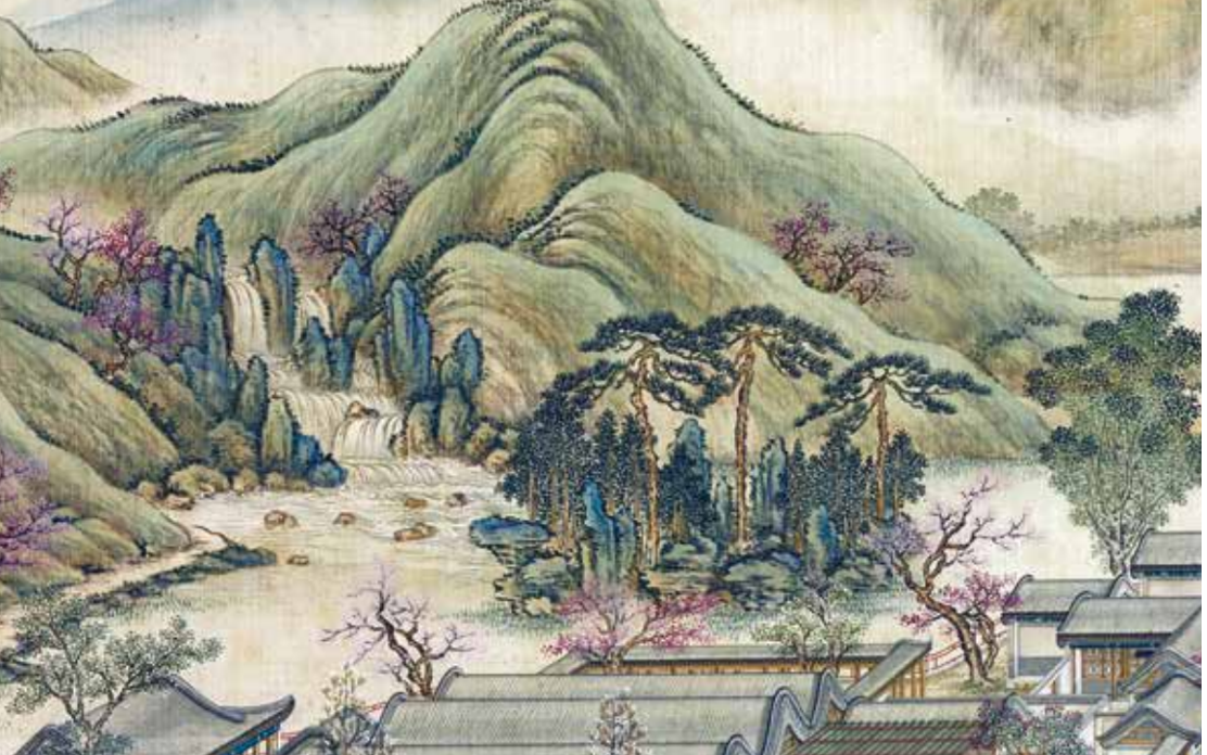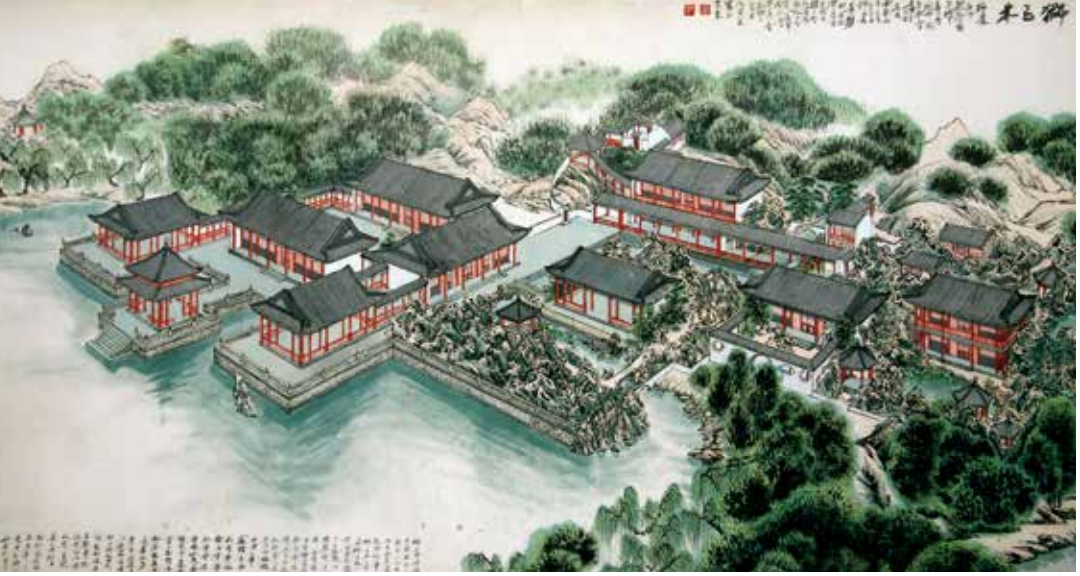 圆明园四十景——西峰秀色中的长青洲和小匡庐景观。