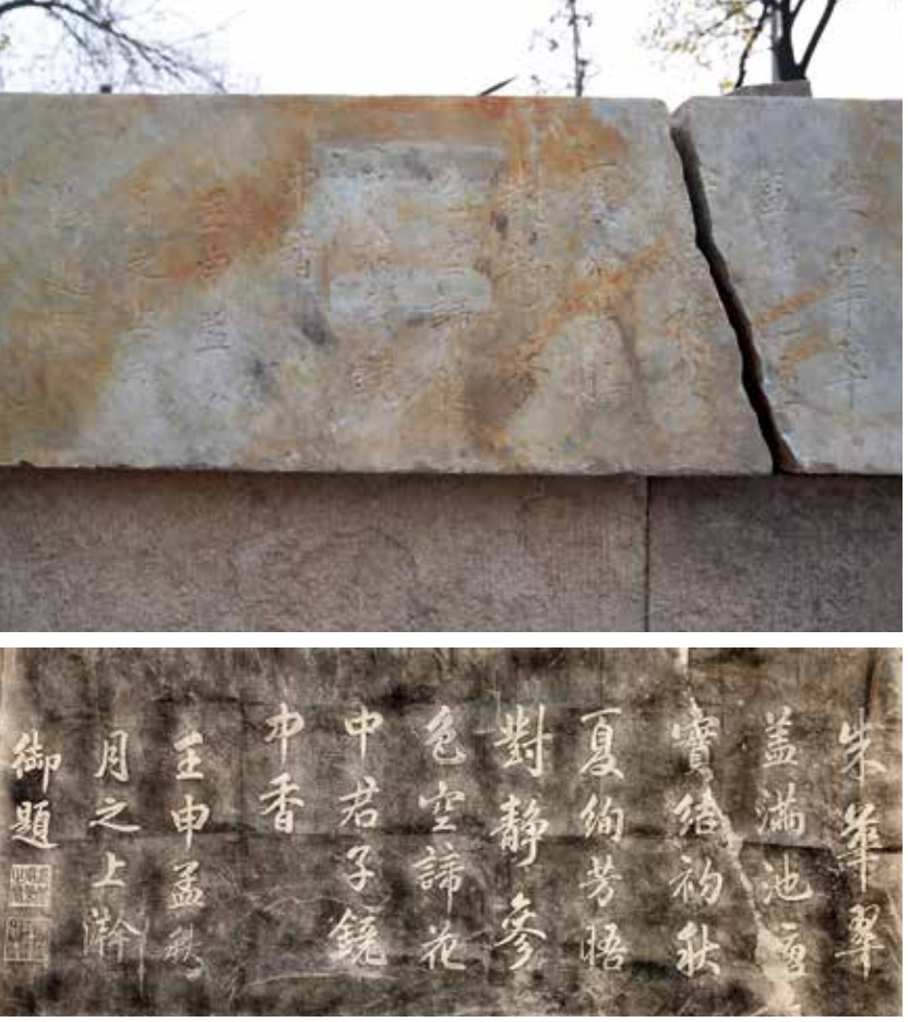 其实,远远不止这些。仅以圆明园的御笔石刻为例,有的散布在圆明园内,有的流失在北京城大小院落中,其中大部分石刻,因为常年存放在私人或单位大院内,鲜为人知,拓片更是从来没有公布过。这些石刻以乾隆、嘉庆、道光皇帝的御笔为主,很多已经风化、辨认不清,却是清代皇家石刻的精品,让我们对昔日的夏宫胜景有了些许想象的空间。