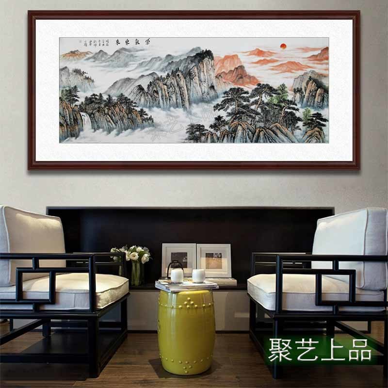 如今无论是企业办公室或是家居生活中,很多人喜欢在墙上挂上一幅名家手绘山水画紫气东来,一来点缀白墙,彰显业主品味内涵,二来增添吉祥,为业主招财纳福。