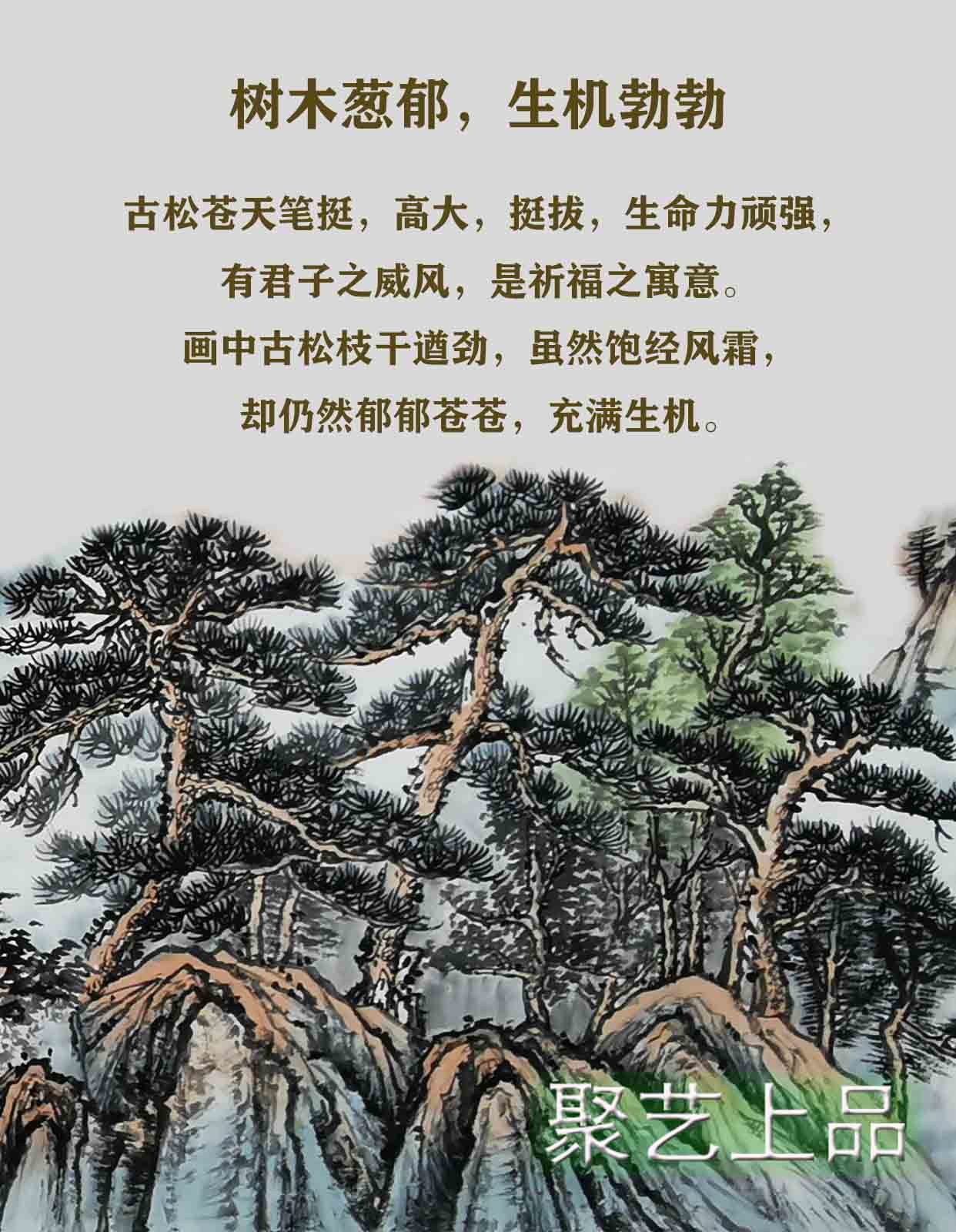 古松苍天笔挺,高大,挺拔,生命力顽强,有君子之威风,是祈福之寓意。